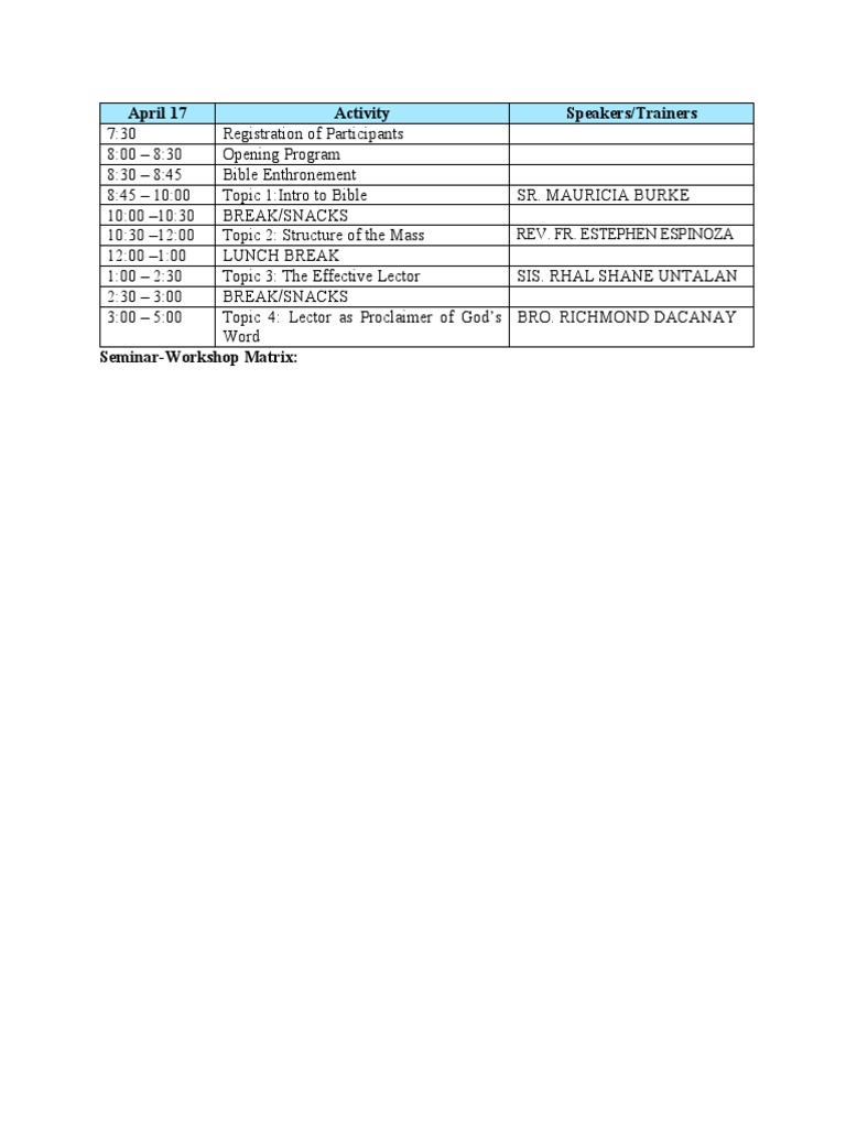 Seminar Workshop Matrix | PDF