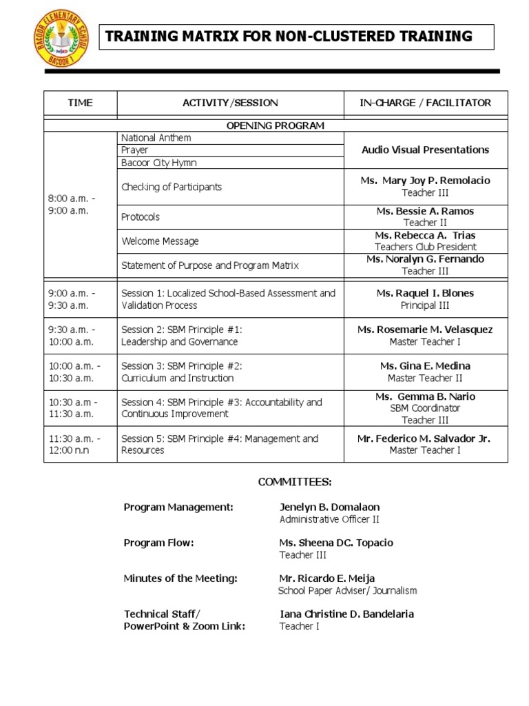 Training Matrix - Inset - Department of Education REGION V SCHOOLS ...