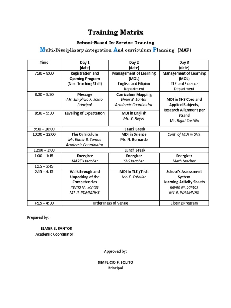 Training Matrix SEMINAR MAP | PDF | Teaching | Learning