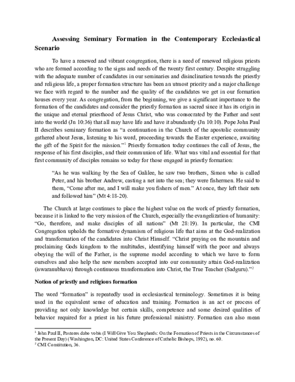(DOC) Assessing Seminary Formation in the Contemporary Ecclesiastical ...