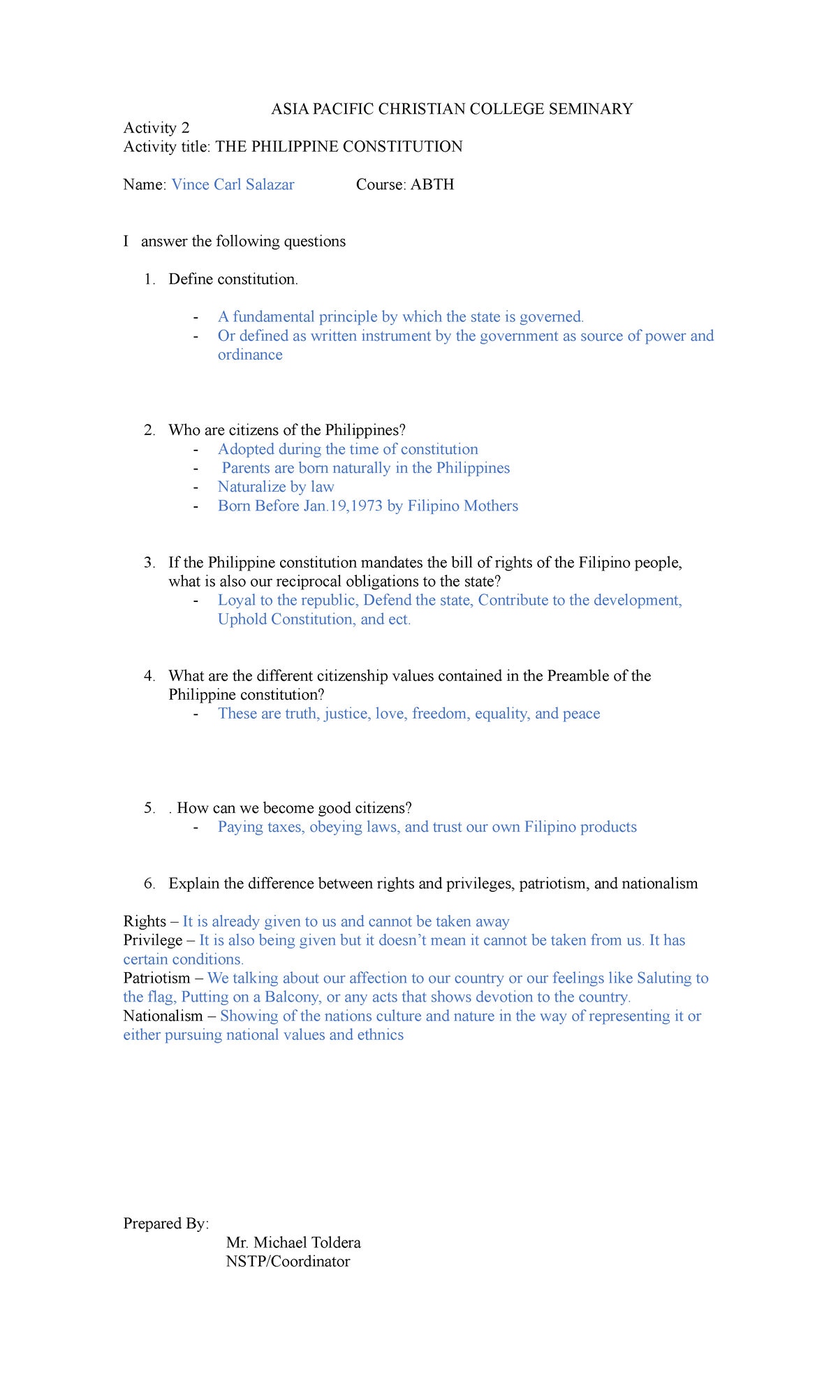 NSTP Activity 2 - nstp sample - ASIA PACIFIC CHRISTIAN COLLEGE SEMINARY ...