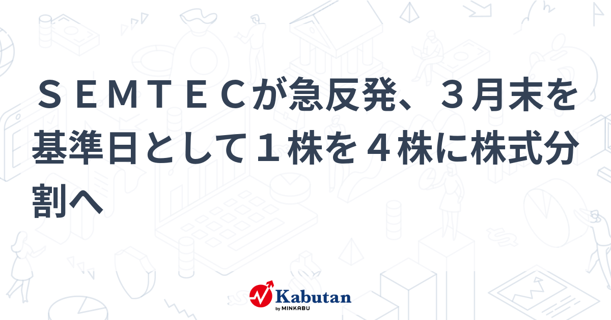 SEMTECが急反発、3月末を基準日として1株を4株に株式分割へ | 個別株 - 株探ニュース