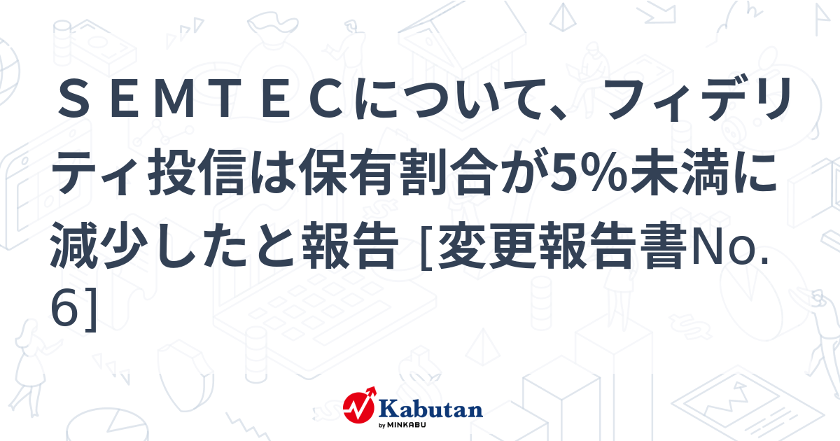 SEMTECについて、フィデリティ投信は保有割合が5%未満に減少したと報告 [変更報告書No.6] | 大量保有報告書 - 株探ニュース