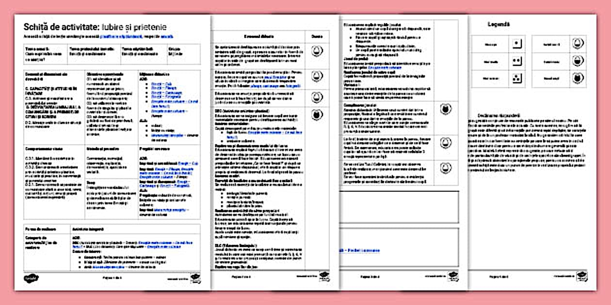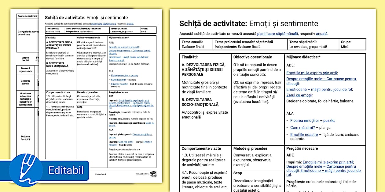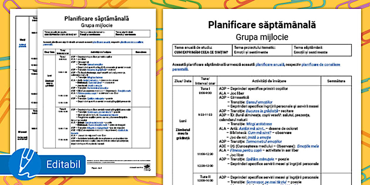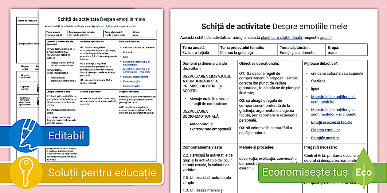 Emoții și sentimente – Model de planificare săptămânală