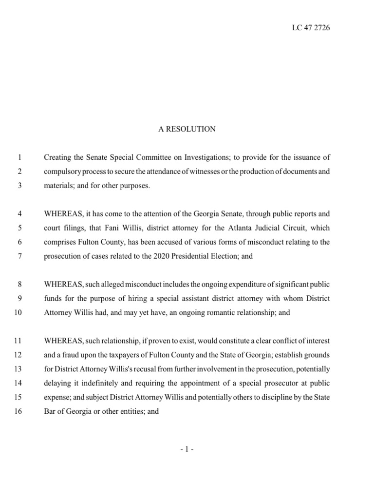 Georgia Senate Resolution | PDF | Prosecutor | United States Senate