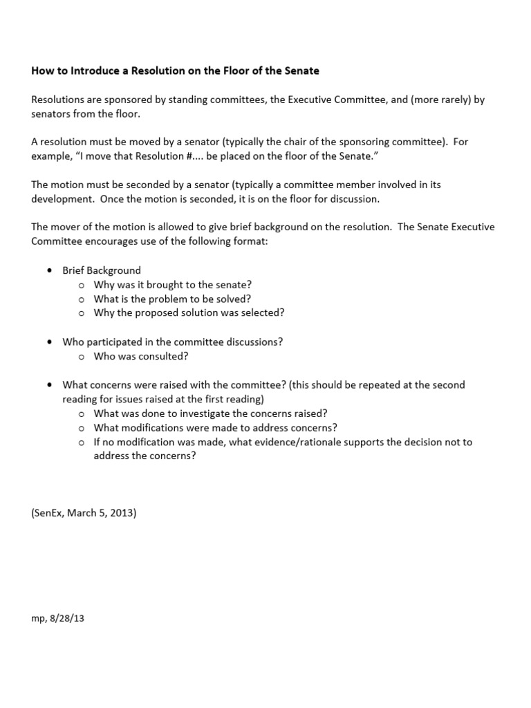 Senate Resolution Introduction Guide | PDF | United States Senate ...