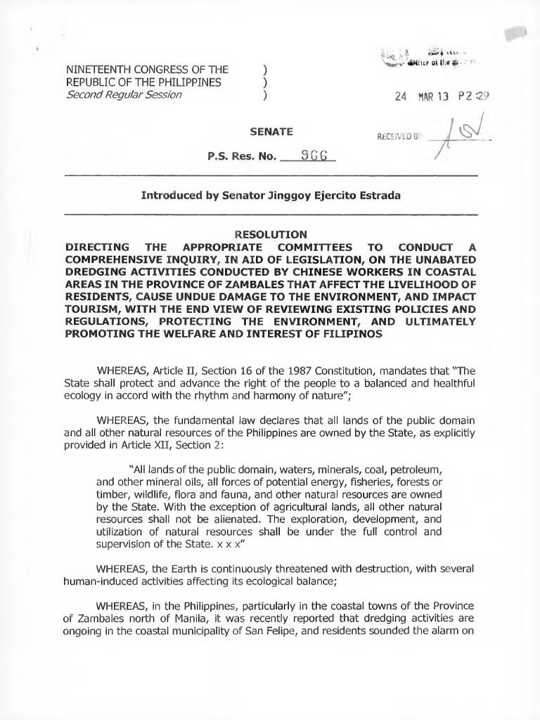 Senator Jinggoy Estrada Senate Resolution Re San Felipe Dredging | PDF ...