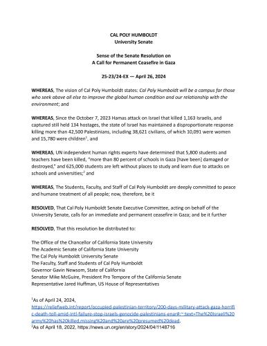Cal Poly Humboldt’s university senate passes sense of the senate ...