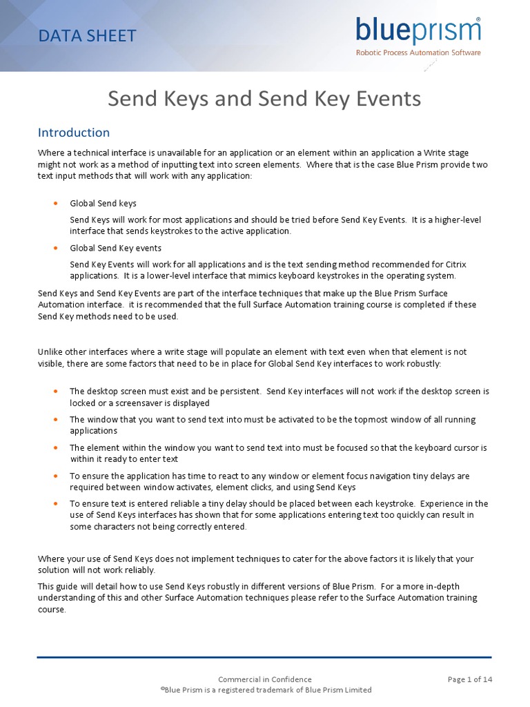 Guide to Send Keys and Send Key Events - Blue Prism for You