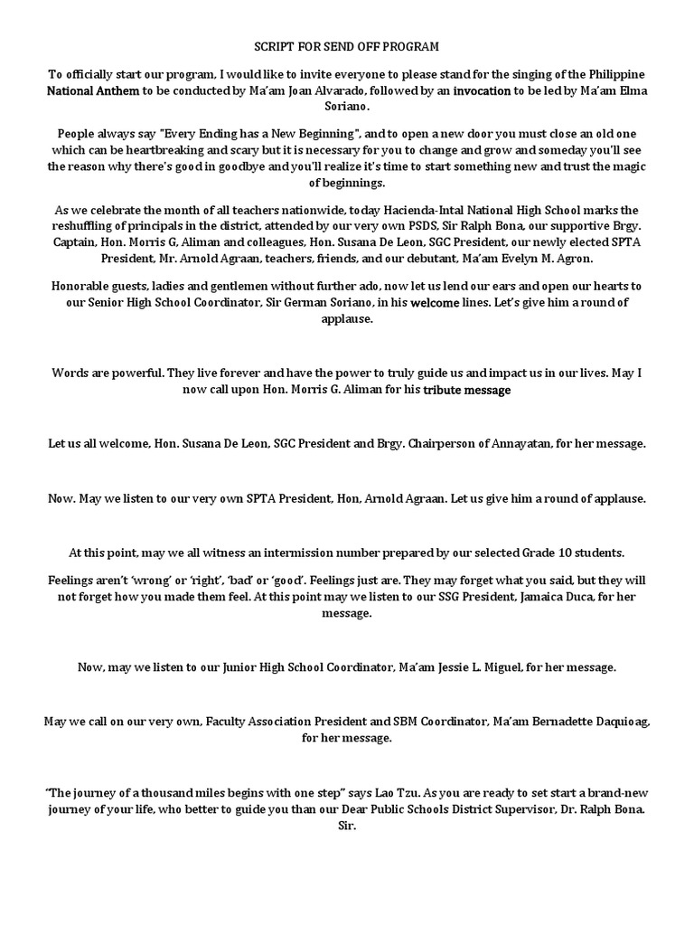 Send Off Program Emcee Script: A Teacher's Tribute - Studocu