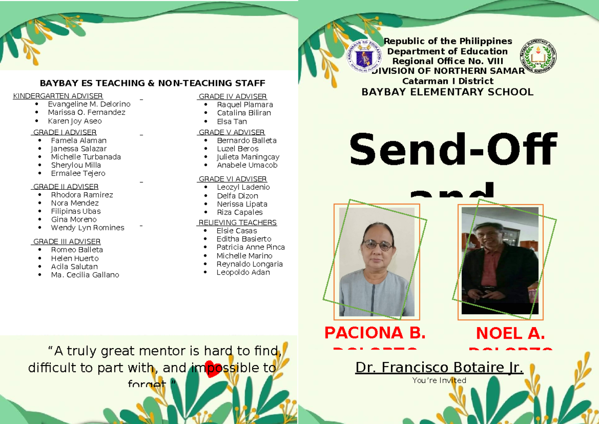 SEND OFF Program - Honoring Mentors at Baybay Elementary School - Studocu