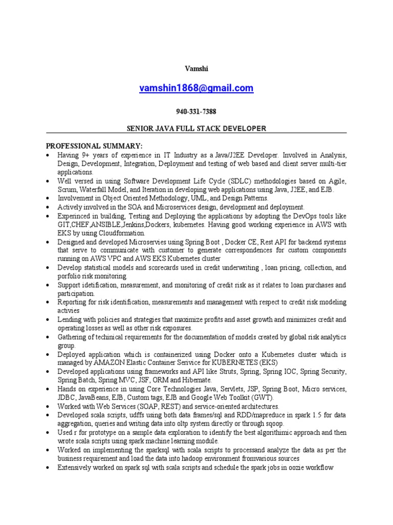 Senior Java Full Stack Developer resume | PDF | Spring Framework ...