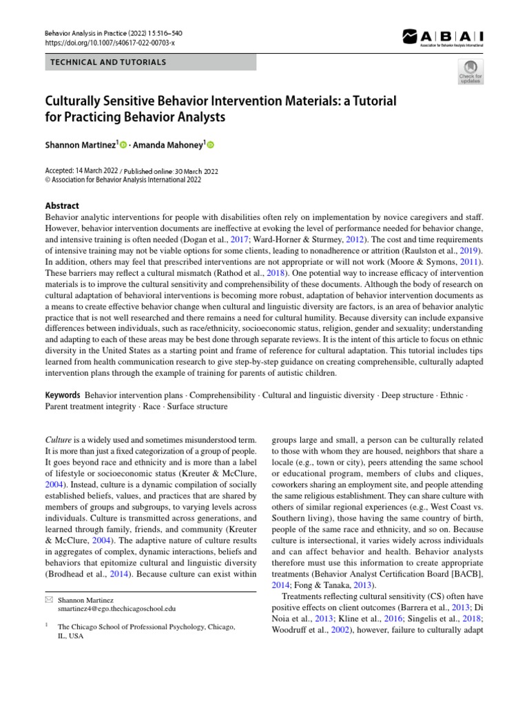Culturally Sensitive Behavior Intervention Materials: A Tutorial For ...