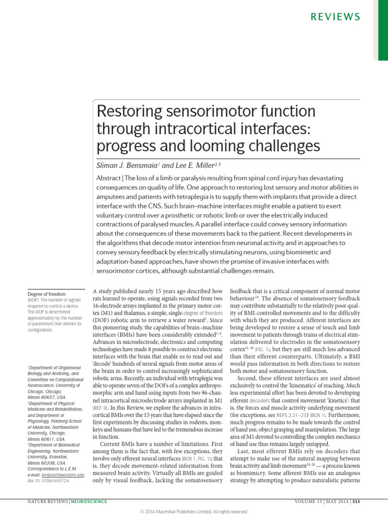 Restoring Sensorimotor Function Through Intracortical Interfaces ...