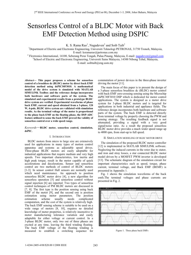 Sensorless Control of A BLDC Motor With Back EMF Detection Method Using ...