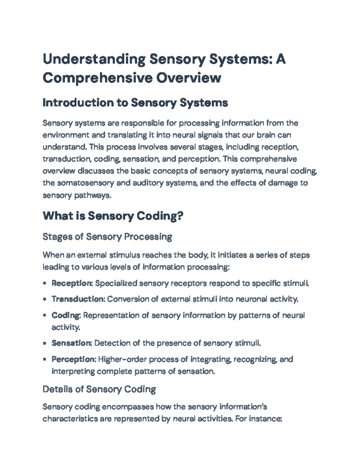 Understanding Sensory Systems: A Comprehensive Overview (Course Code ...