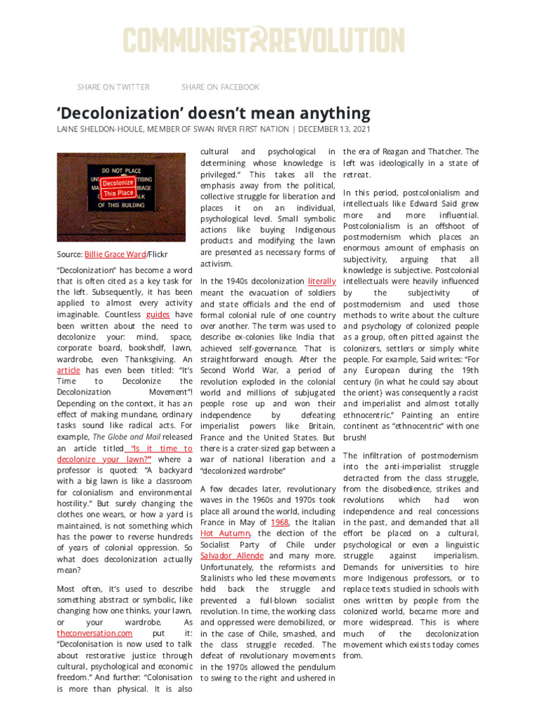 Decolonization' Doesn't Mean Anything | PDF | Cost Of Living ...