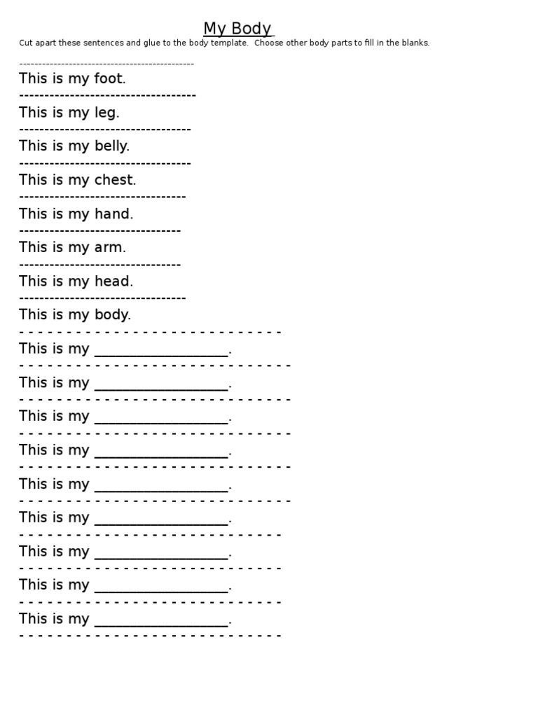 Sentence Writing Body Parts Worksheet 9u3inr | PDF