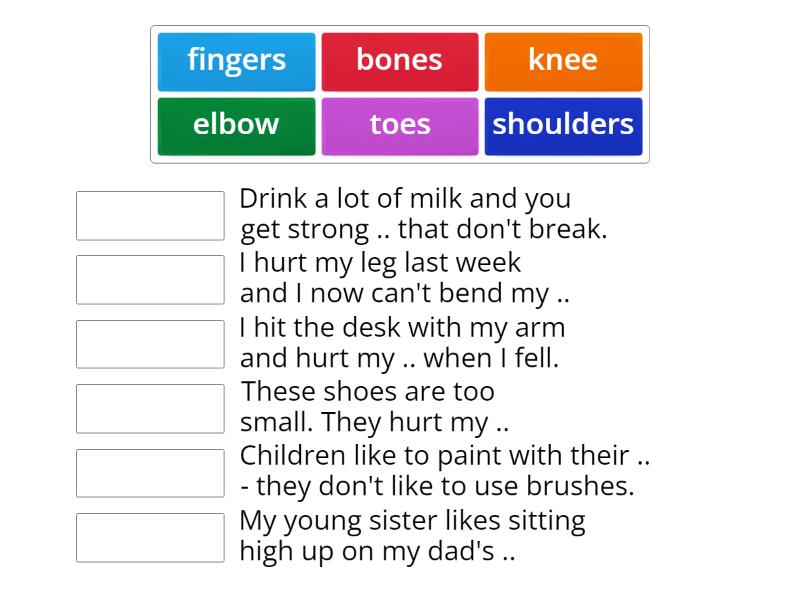 Match to the correct sentence. (body parts) - Match up