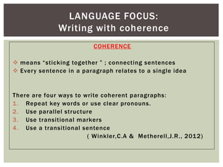 PPT - COHERENCE AND COHESION IN WRITING PowerPoint Presentation, free ...