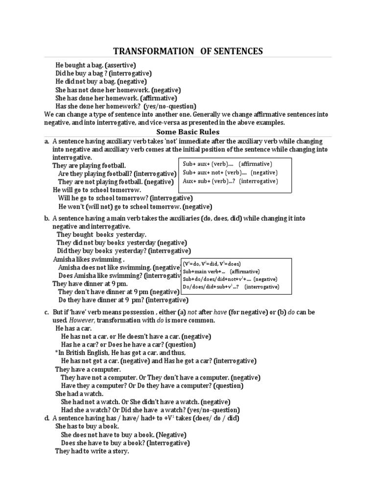 Transformation of Sentences | Basic Rules | English Grammar | Adda247 ...