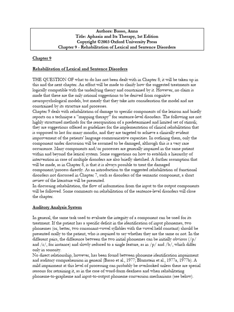 Basso Anna Rehabilitation of Lexical and Sentences Disorders | PDF ...