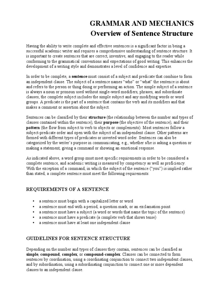 Overview of Sentence Structure | PDF | Sentence (Linguistics) | Subject ...