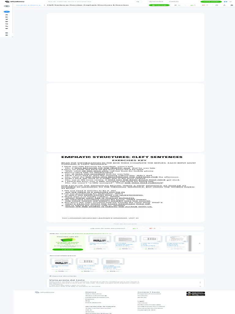 Cleft Sentences Overview - Emphasis Structures & Exercises - Studocu | PDF