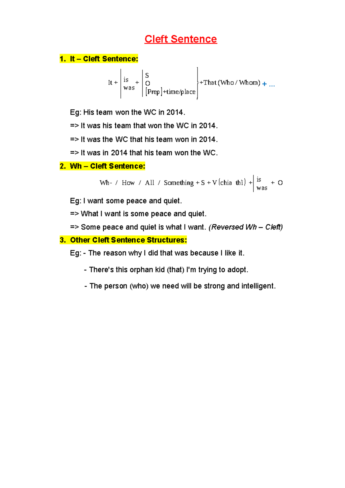 Cleft Sentences Overview - abcg - Studocu