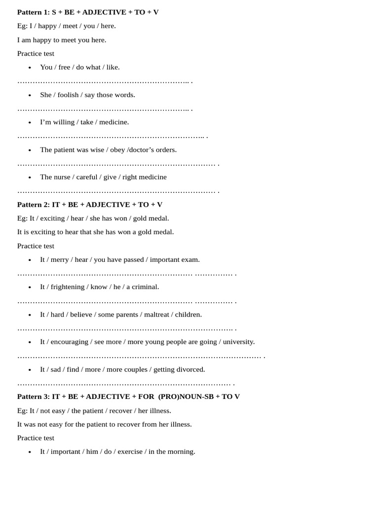 Exercises On Patterns of Sentences 2 - ENGLISH | PDF