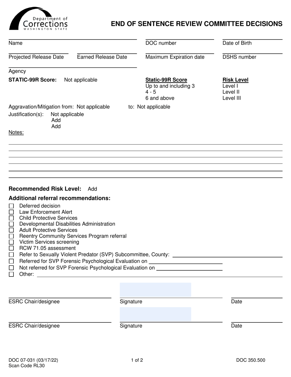 Form DOC07-031 - Fill Out, Sign Online and Download Printable PDF ...