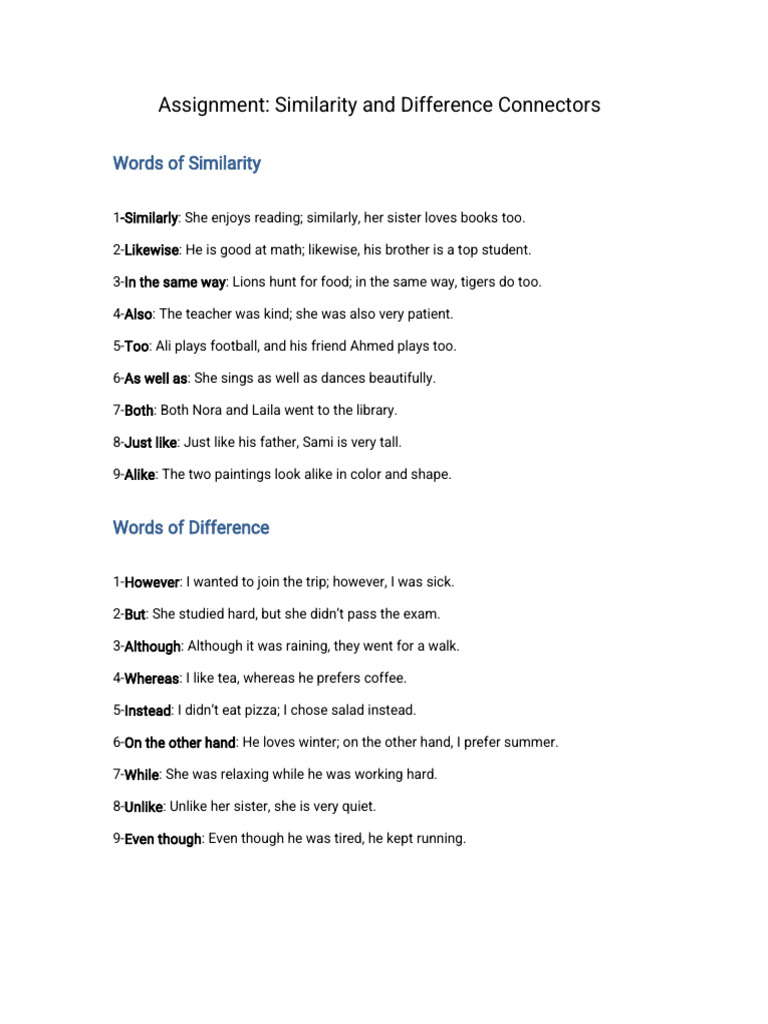 15 Similarity transition words (with example sentences)