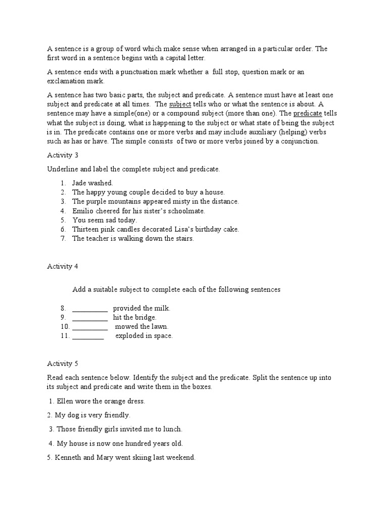 Sentence and Reading Comprehension | PDF | Subject (Grammar) | Sentence ...