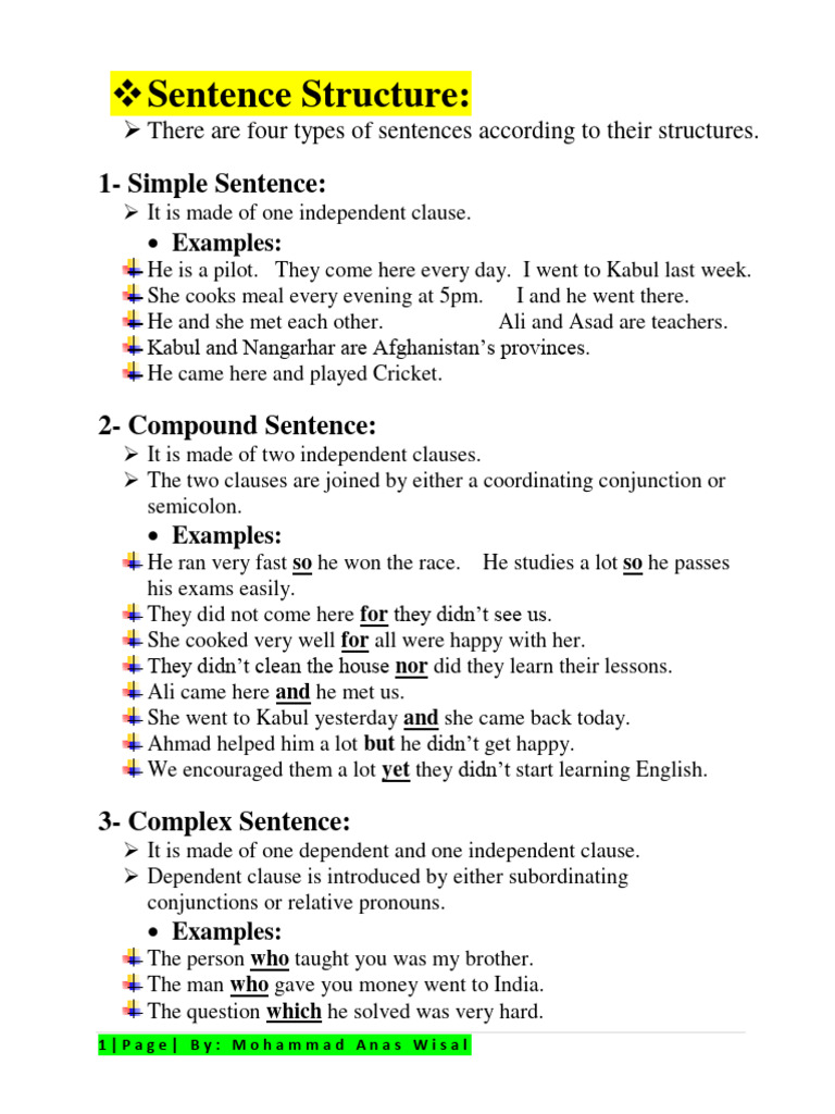 English Sentence Structure | Sentence Structure Review – DFXDX