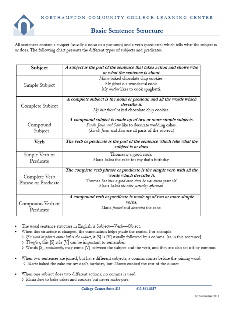 Basic Sentence Structure | PDF | Subject (Grammar) | Verb