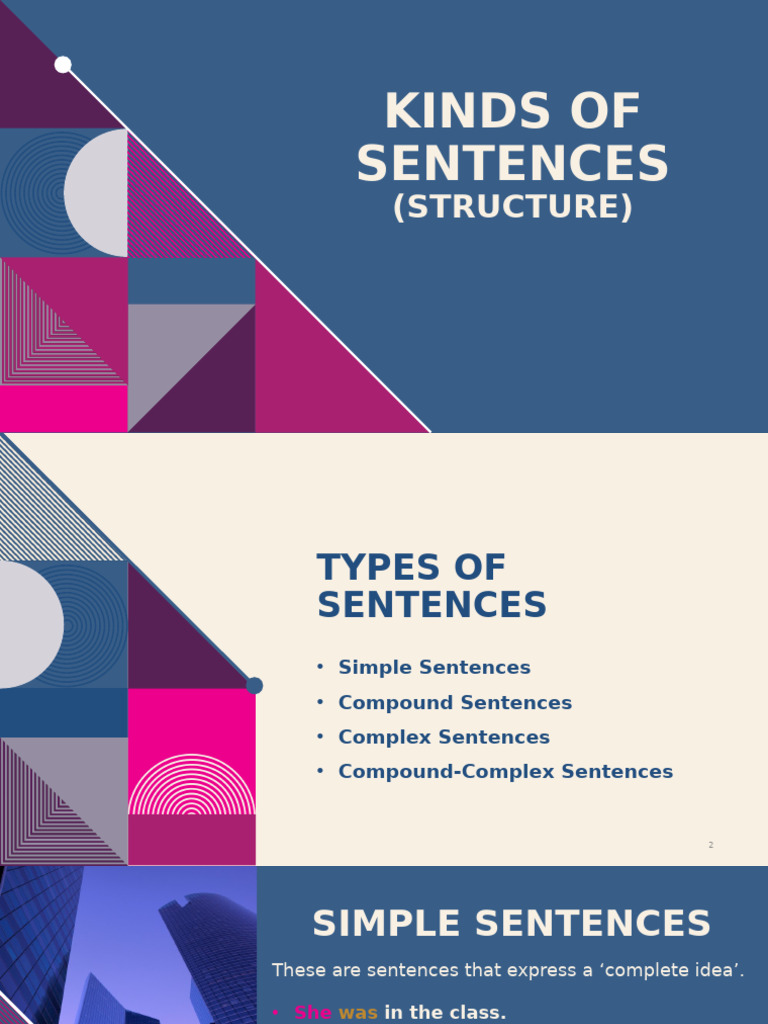 Sentence Structure: 1. Building Blocks 2. Simple Sentence 3. Compound ...