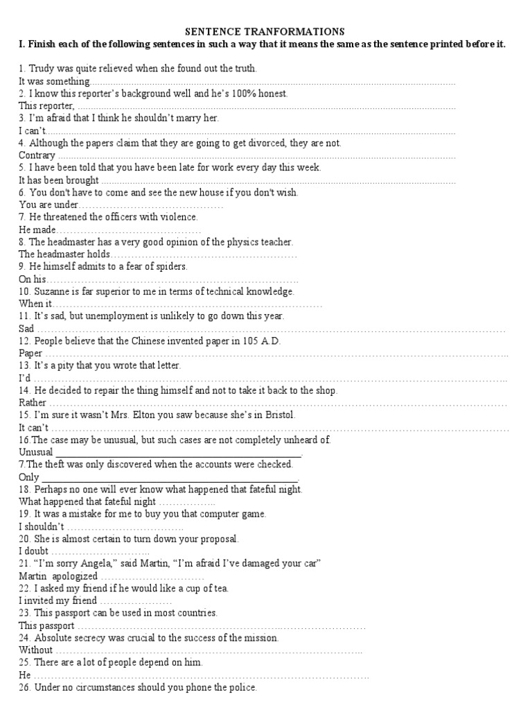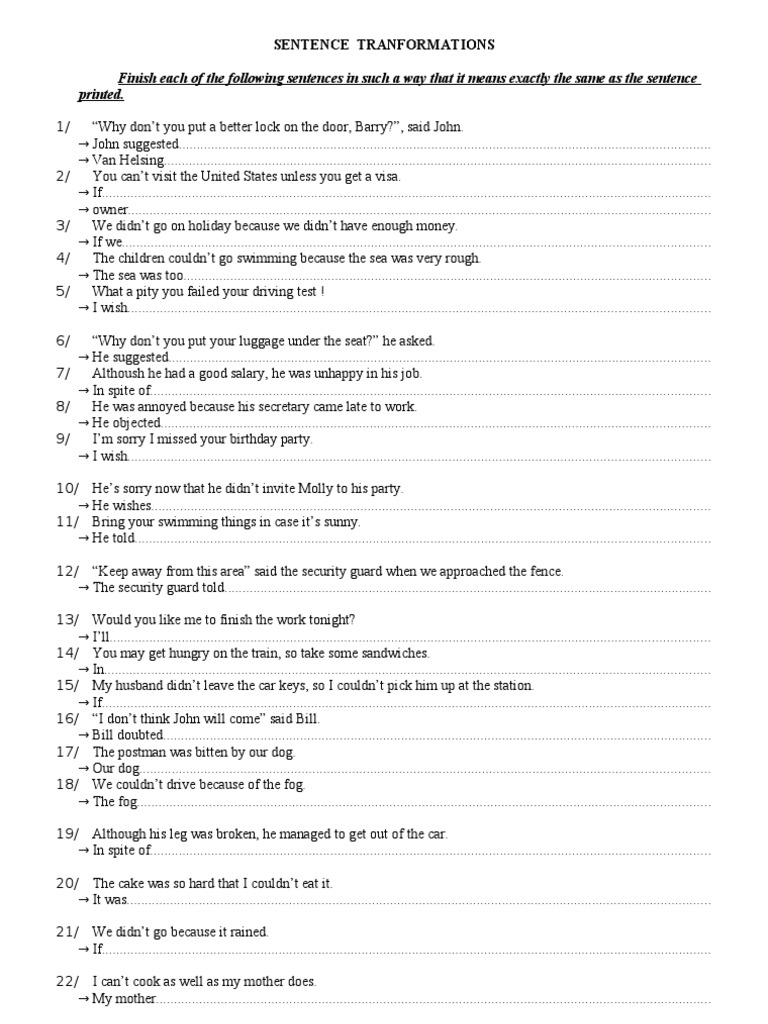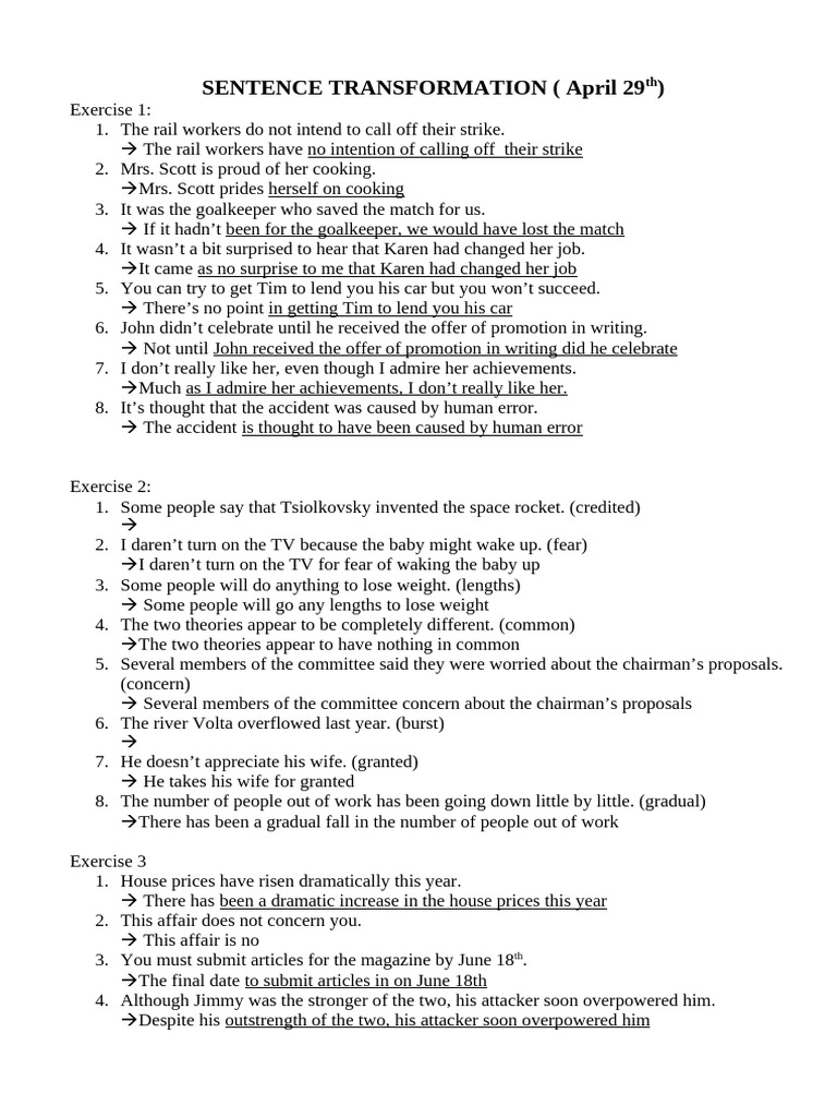sentence transformation exercises