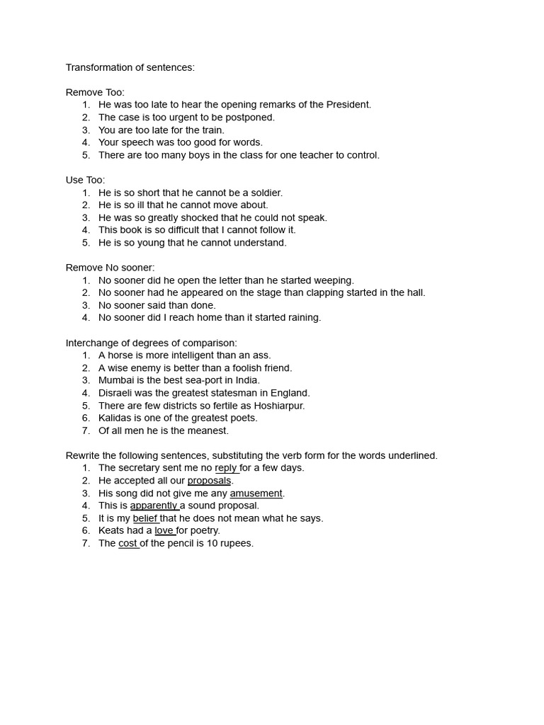Exercise On Transformation of Sentences | PDF