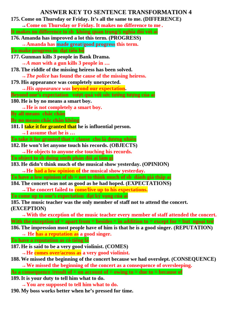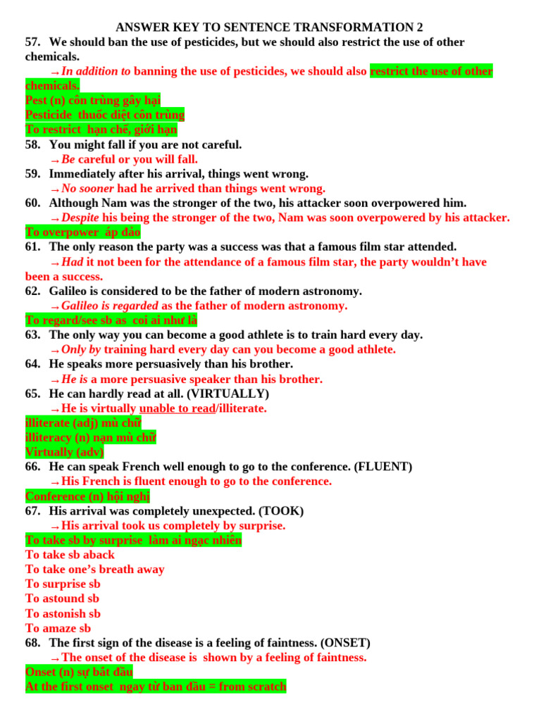 Sentence Transformation Answer Key | PDF
