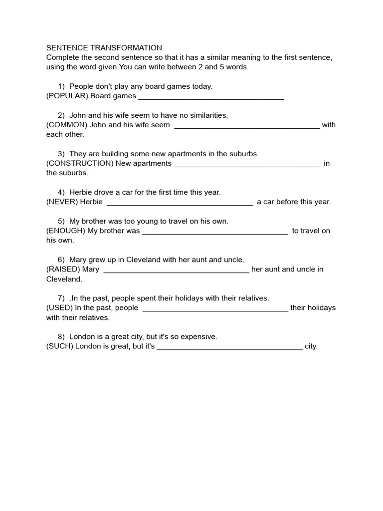 Sentence Transformation (Advanced) | PDF | Games & Activities | Home ...