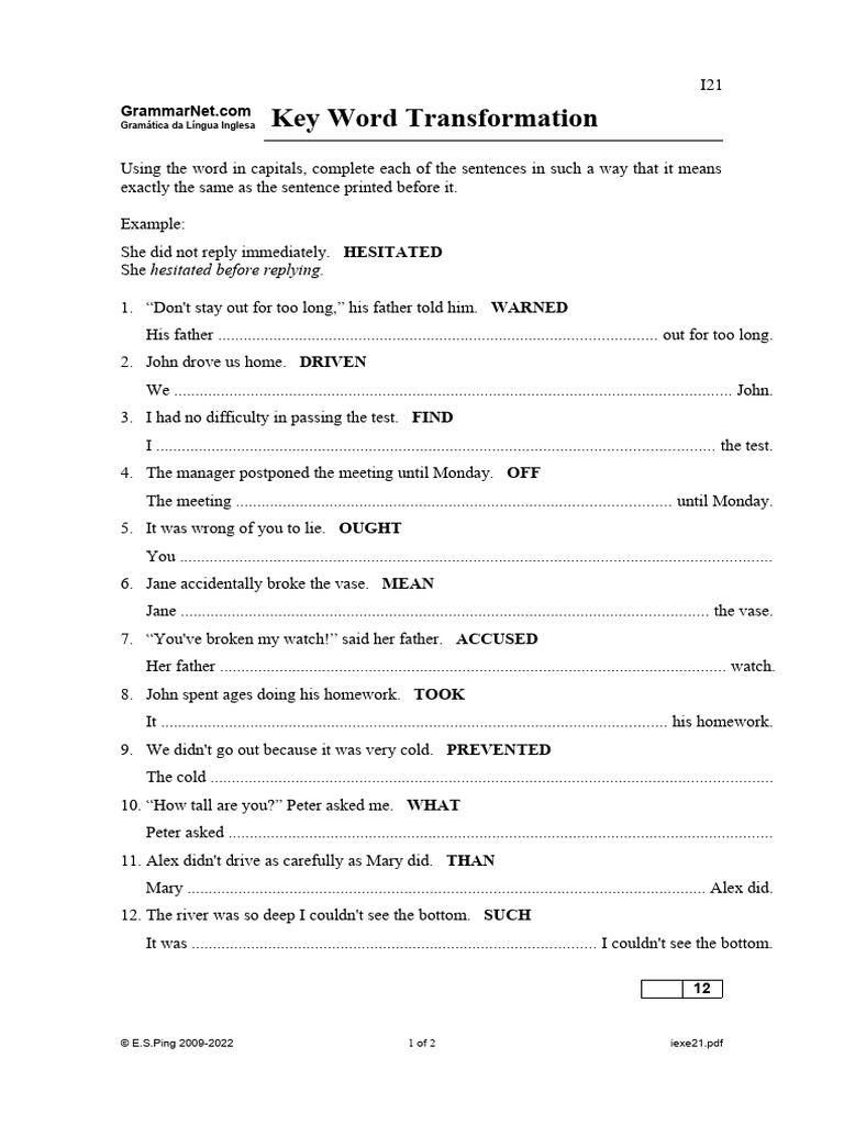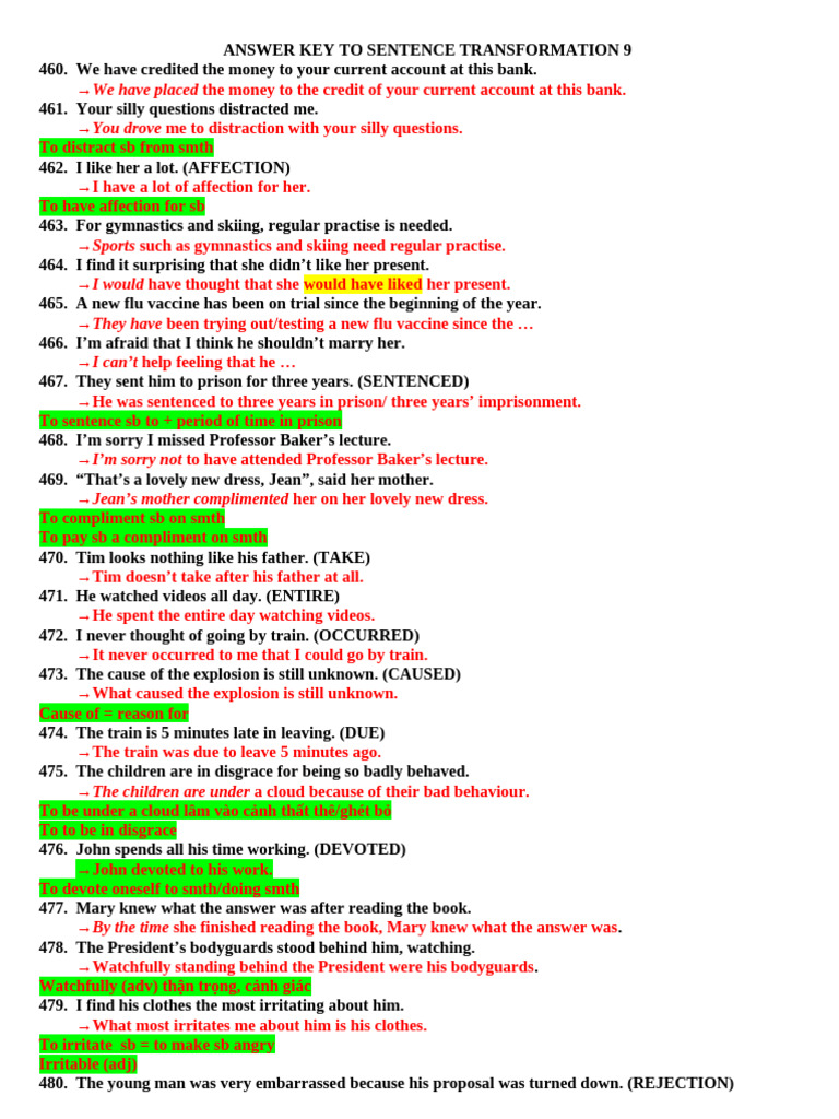 Sentence Transformation 1 (Key) | PDF