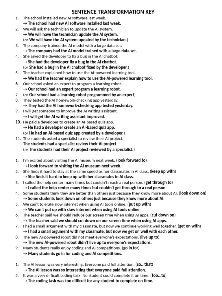 Sentence Transformation Key | PDF | Artificial Intelligence ...