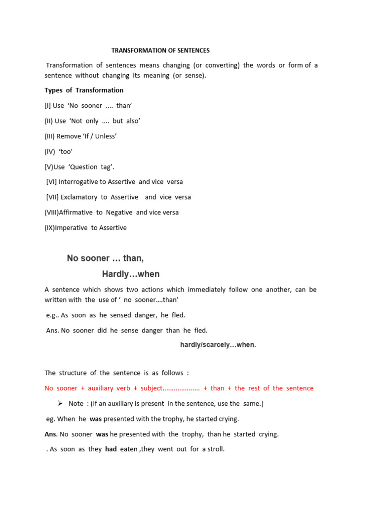 Transformation of Sentences Rules | PDF | Clause | Sentence (Linguistics)