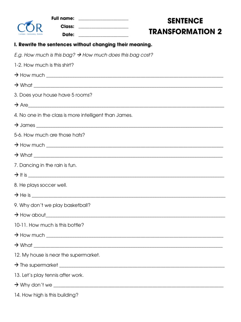 Sentence Transformation Exercises: English Grammar