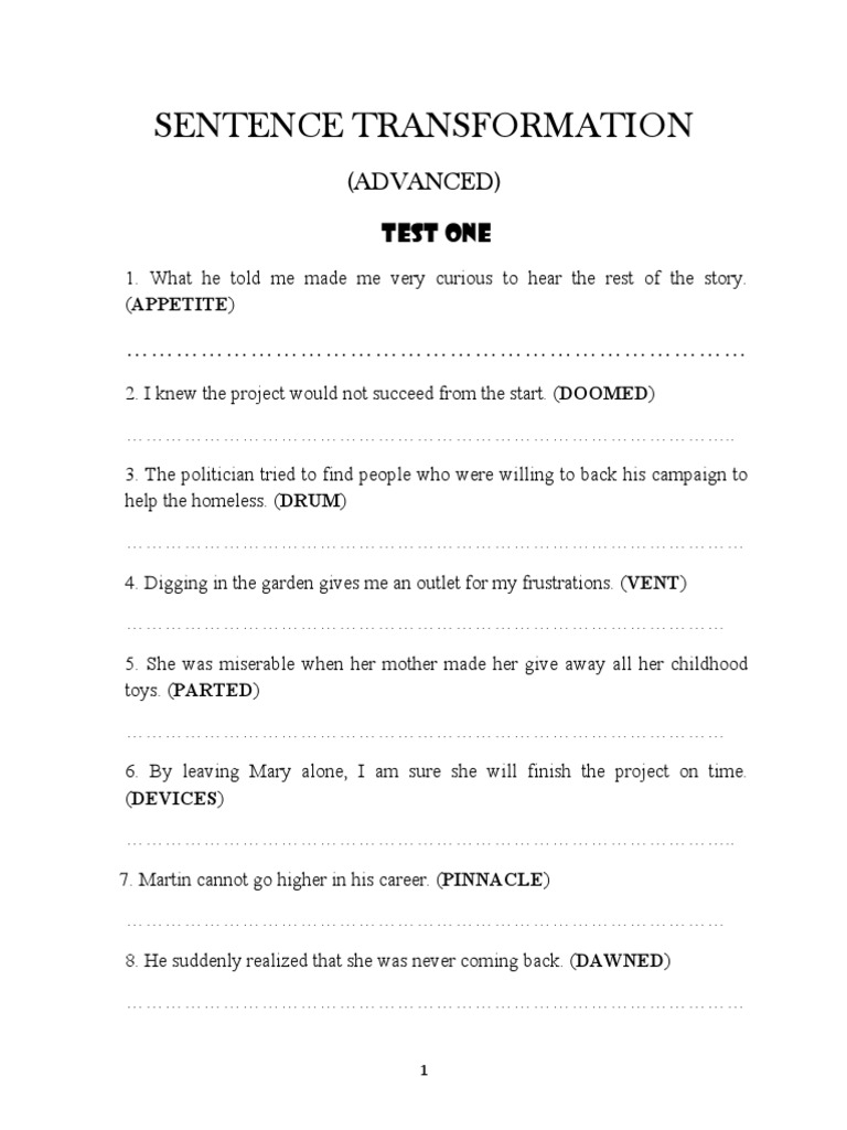 Sentence Transformation Exercise 1 | PDF