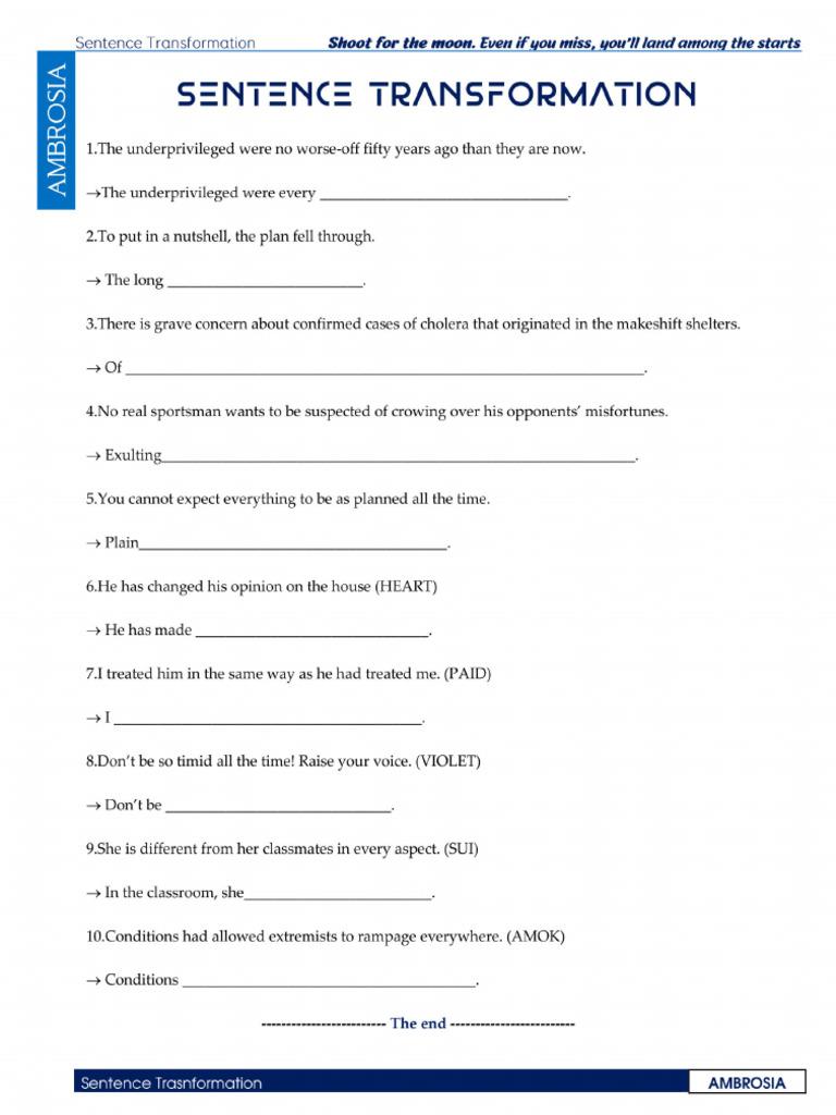 Sentence Transformation Exercises Guide | PDF