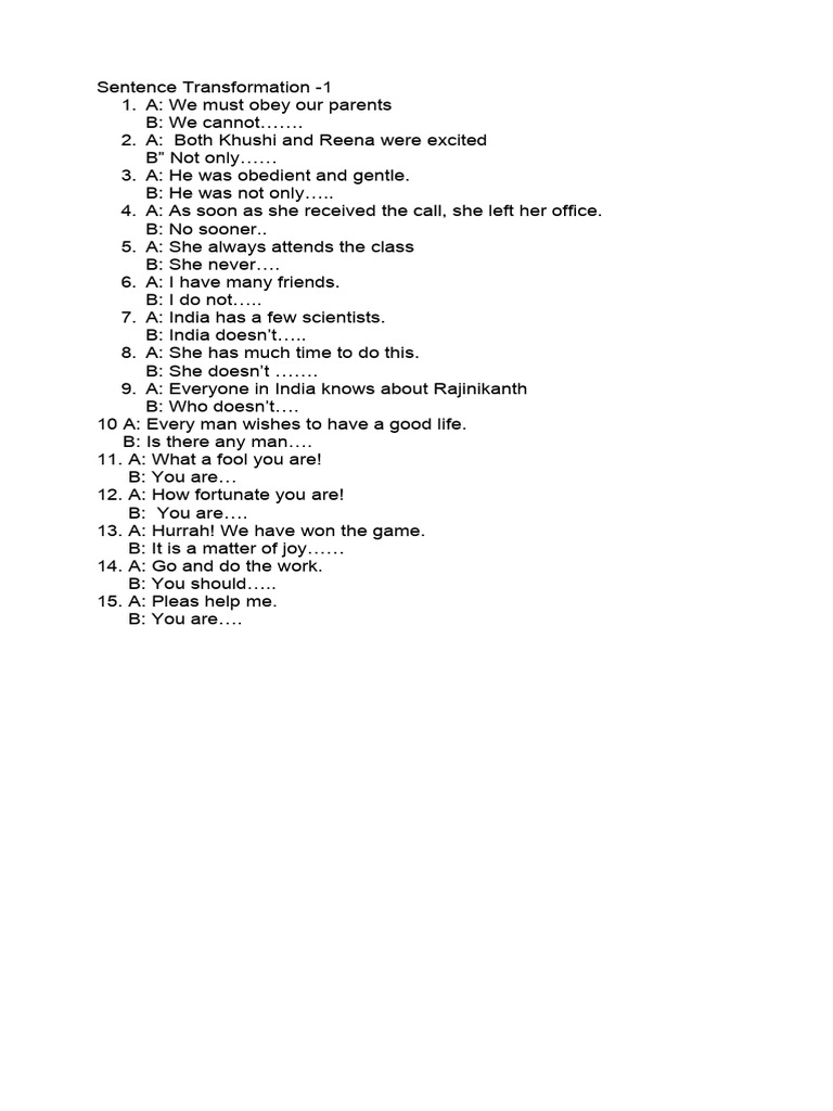 Sentence Transformation 1 | PDF