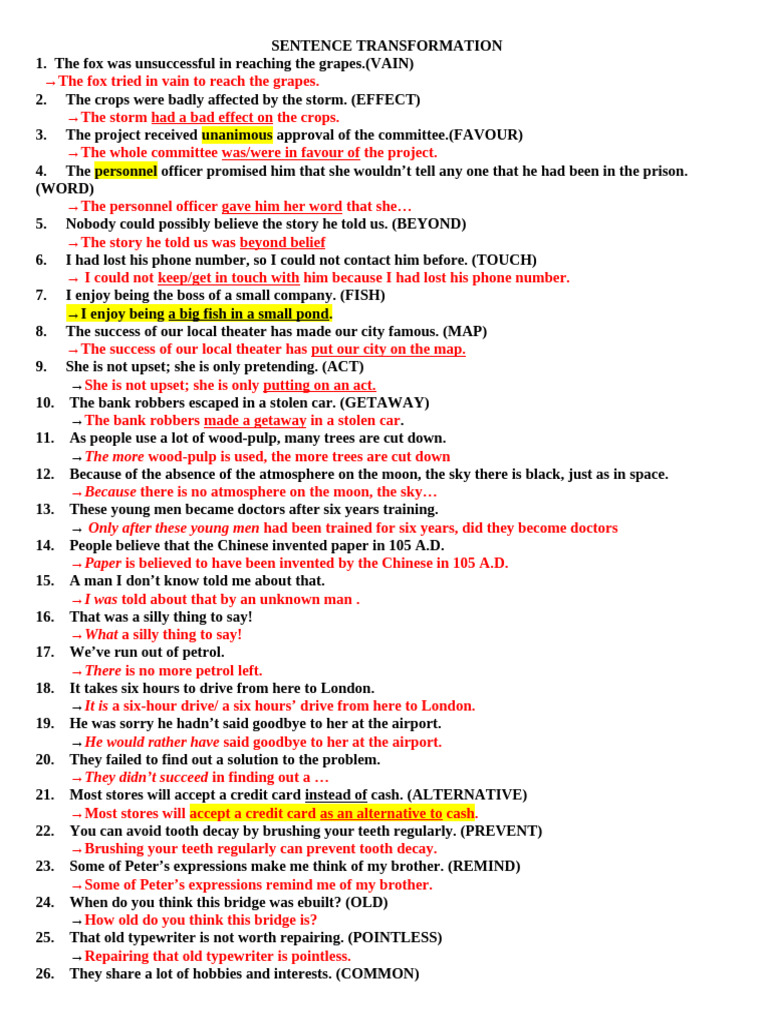 Examples Of Sentence Transformation at Leroy Gonzales blog