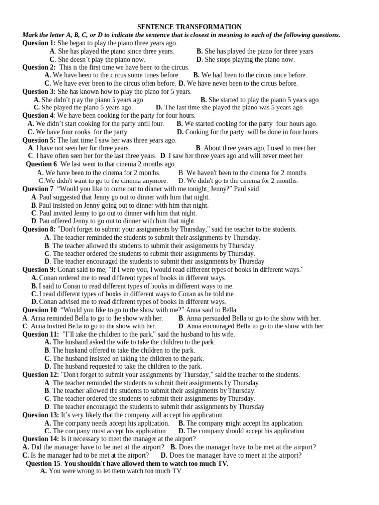 Sentence Transformation Exercise | PDF