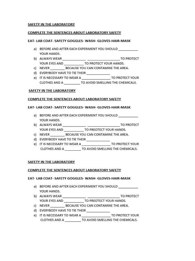 Laboratory Safety Sentence Completion | PDF | Home & Garden | Computers